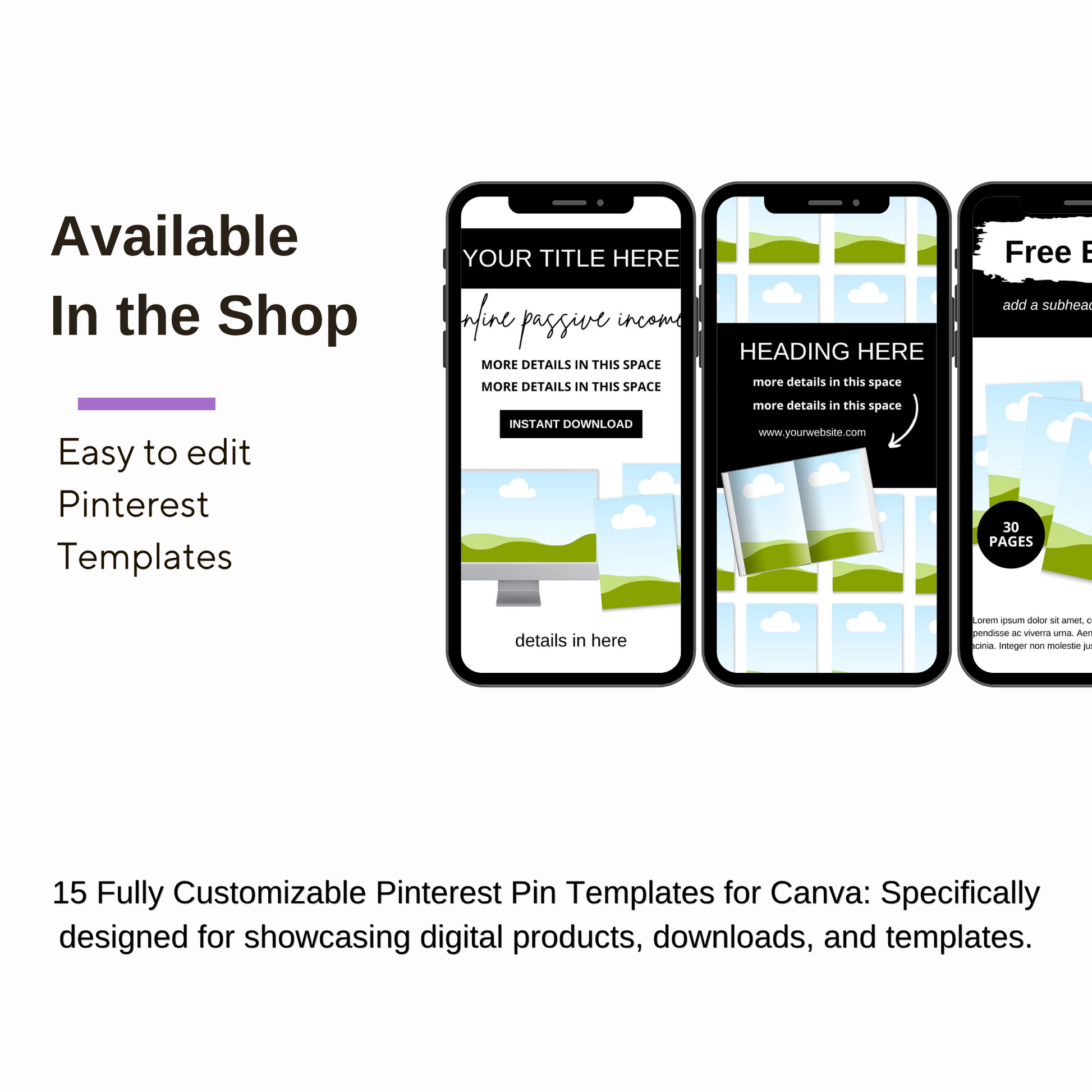 15 Fully Customizable Pinterest Pin Templates for Canva: Specifically designed for showcasing digital products, downloads, and templates.