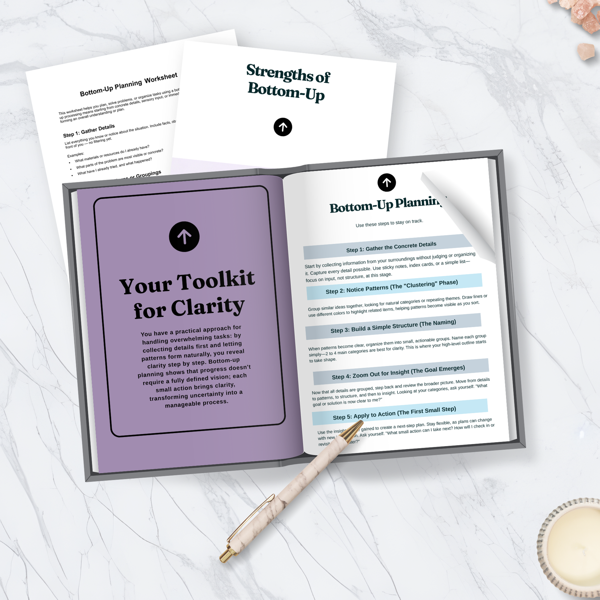 Transform scattered ambitions into calm, step-by-step action with bottom-up planning!